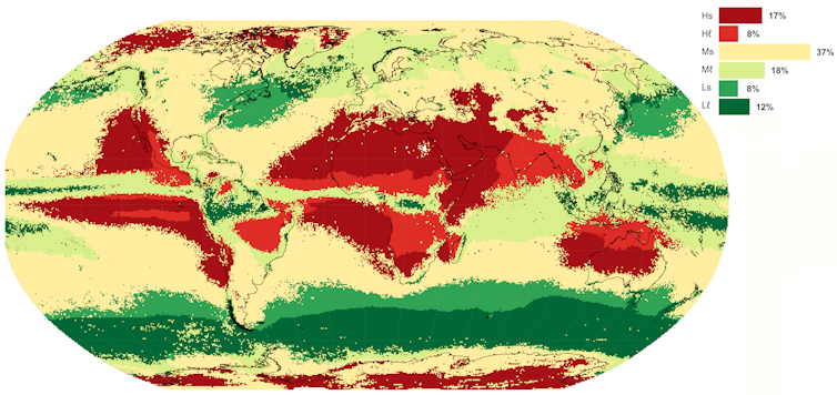 Así, la herramienta facilitará un seguimiento de la evolución de la superficie global que abarca cada tipo de clima a escala multianual, observando posibles tendencias regionales.